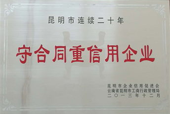 昆明市連續(xù)二十年守合同重信用企業(yè)